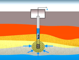 Глубокие водоносные пески. Бурение на этот слой позволяет получить скважину, производительностью более 0,5 кубометров воды в час. Но для ее нормальной работы часто требуется монтаж сложной водоприемной части, состоящей из нескольких фильтров. Бурение проводится шнековым способом, но иногда, из-за особенностей геологического разреза, приходится комбинировать шнековую и роторную технологии.